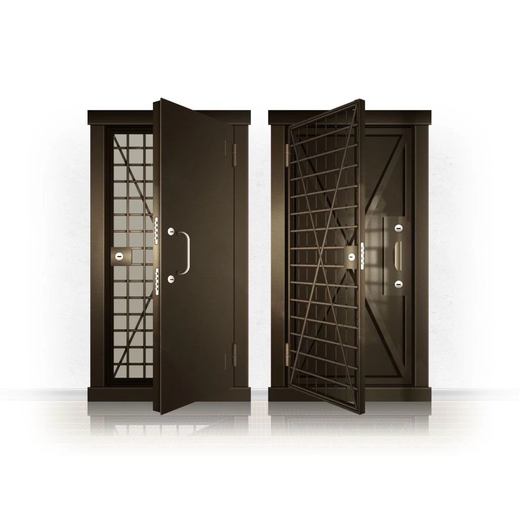 Металлические двери КХО и КХН представляют собой входные блоки, обладающие высоким уровнем взломостойкости и состоят из трех основных элементов: усиленного каркаса, сплошного металлического полотна и решетчатой двери. Дверной блок изготавливается из стального уголка 100*100 мм. Места крепления блока к стене цементируются и закрываются стальными наличниками шириной 40 мм. Крепеж заходит вглубь стены на 80 мм. В конструкции внешней створки монтируются ребра жесткости, для обшивки используется сталь толщиной не менее 3 мм. Внутренняя решетка изготавливается из прутка диаметром 16 мм. Размер ячеек решетки должен составлять не более 15 на 15 см. В точках пересечения прутья надежно приваривают друг к другу. В КХО и КХН необходимо поддерживать определенную температуру и влажность. Для этого внутреннее пространство глухой двери заполняется теплоизоляционным материалом, а по периметру двери приклеивается уплотнитель. Такие двери оборудуются замками с повышенным уровнем взломостойкости. Специализированные двери КХО и КХН в Чаплыгине могут быть оснащены сигнализацией, в конструкции могут быть проушины для навесного замка и элементами для опечатывания. Если идет речь о двери в комнату хранения оружия, в створке оборудуется окно для выдачи оружия и спец. средств, которое накрывается стальной дверцей.